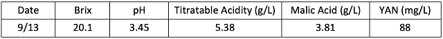 Table 1: Juice Chemistry after chaptalization (Imbibe Solutions)