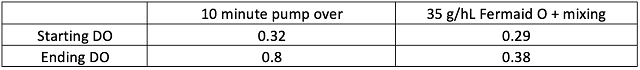 Table 2: Dissolved oxygen before and after fermentation additions (in-house data)