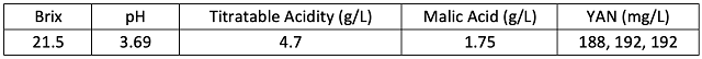 Table 2: Wine chemistry for three treatments of Viognier (ICV Labs Oct 31, 2024)