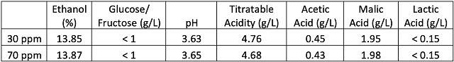 - Addition of 70 ppm SO2 to settled juice prior to fermentation