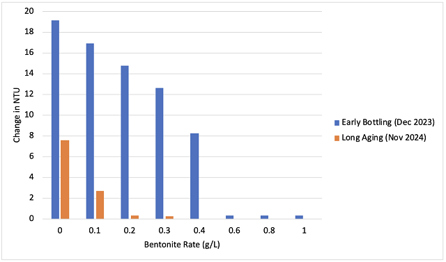 Figure 1: Pre-bottling bentonite trial (Imbibe Solutions). A change of 2 NTU or less indicates the wine is stable.