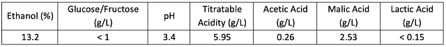 Table 2: Post fermentation wine chemistry (ICV Labs, December 2023)