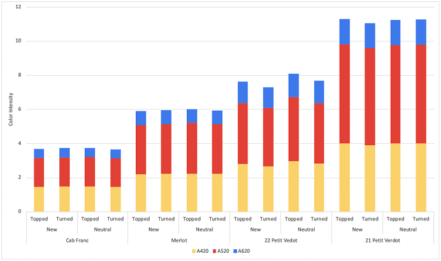 Oxygen related metrics including free and total SO2, acetic acid and acetaldehyde were nearly identical in all lots (Table 3, Figure 4), as was color intensity (Figure 5).